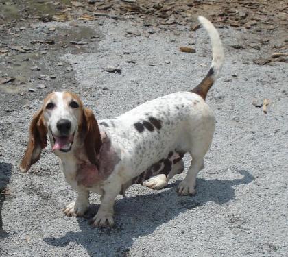| LIZA Liza is a very sweet girl who looks a little rough right now, but soon she'll be all healed! She was rescued after spending her entire life chained in a filthy, muddy pit behind a barn and used as a puppy factory. When we rescued her, she reeked of infection and the vet determined a massive infection had spread from what was possibly an envenomation from a spider or snake bite; she required surgery to remove necrotic tissues from her shoulder, chest, and neck area. She would not have survived much longer without treatment. She is now on a heavy antibiotic treatment and is well on her way to healing. Liza wants nothing more than to be held and loved on. She lives for belly rubs. She'll climb in your lap for hugs every chance she gets! She is an incredibly sweet, trusting dog despite her life of neglect and boredom. She needs a home that understands Basset Hounds and their affinity to voice all of their concerns... yes, she's a barker... but her sweetness and eagerness to please makes up for it!! |